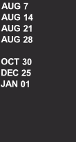 CLOSURE DATES 2025 - E MAIL OR PHONE FOR DETAILS